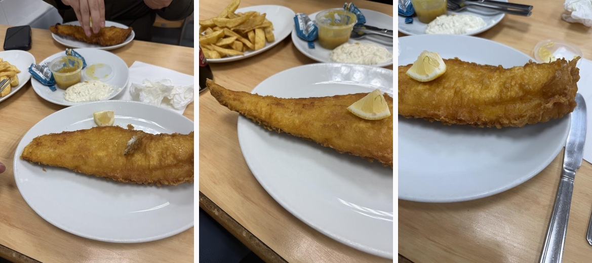 Amazing, I went to this shop completely by accident as I was walking I thought yes fish and chips would be nice so I went and honestly one of the best decisions I’ve made the lady at the till was wonderful friendly and very welcoming I order salt and pepper squid cod and chips all of the where made to order extremely fresh and generous portions I honestly can say I will be coming here more regularly